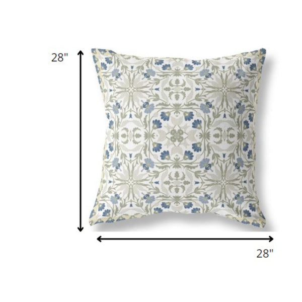 Combining natural elements with neutral hues, this sleek and stylish White Green Paisley Indoor Outdoor Throw Pillow will give rise to a minimalistic boho-chic essence in your home. The soothing tones of white with the intricate floral patterns in sage green, navy, and pale gray create a brilliant work of art that leaves viewers in awe. Made with high-quality broadcloth fabric that is known for its durability to last long while its smooth surface texture offers characteristic sheen. Ideal for both indoor and outdoor usage, this pillow is blown and filled with 100% polyester material for a plush feel and extra fluffiness, making it the perfect accent for style and comfort. Take home this stunning decorative pillow and set a calm and relaxing ambiance in your bedroom, living room, or sitting space. 28” x 28” x 5”