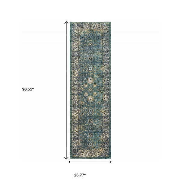 The enchanting shades of the Peacock Blue and Ivory Eclectic Patterns Indoor Runner Rug will set the tone for an exquisite vintage styling to your living space. The fusion of eclectic ivory patterns and warm shades of alabaster on a peacock blue base creates a charismatic color palette to add a traditional touch to your place. Top-notch quality is maintained by this machine-woven rug owing to the blend of polypropylene and polyester for enhanced durability. The cut-loop construction adds depth to the surface structure, making it soft and comfortable for indoor use. With this stunning runner rug, you’re just a step away from transforming your home to a whole new level. 2'3" x 7'6"