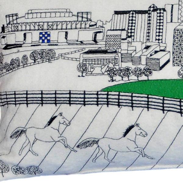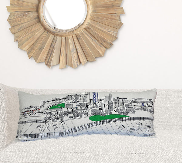Showcase this famous city, with our Cream Color Lexington Daylight Skyline Queen Size Lumbar Decorative Pillow. The daylight view of the Lexington, is picture perfect. The gorgeous art features many famous landmarks and references for this destination city, rendering a modern whimsical way to bring this iconic city to life. Made of a wool/nylon blend, this high quality stitched decorative pillow features black on white embroidered artwork mixed with pops of color that highlight important and recognizable icons from this popular city. This pillow makes a great gift, decorative accent and conversation piece. 4" x 35" x 14"