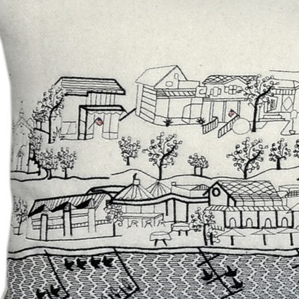 Showcase this famous city, with our Cream Color St Michael's Harbour Daylight Skyline Queen Size Lumbar Decorative Pillow. The daylight view of the St Michael's is picture perfect. The gorgeous art features many famous landmarks and references for this destination city, rendering a modern whimsical way to bring this beautiful coastal vacation spot to life. Made of a wool/nylon blend, this high quality stitched decorative pillow features black on white embroidered artwork mixed with pops of color that highlight important and recognizable icons from this popular Maryland city. This pillow makes a great gift, decorative accent and conversation piece. 4" x 35" x 14"
