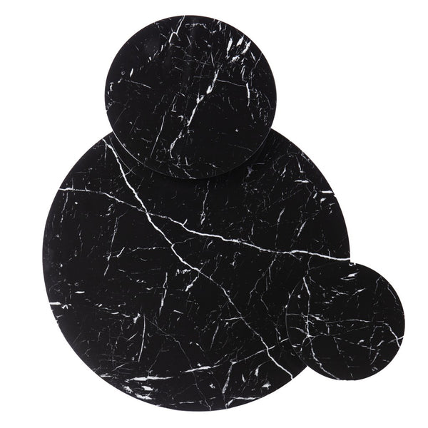 This good looking 43" black solid manufactured wood and metal free form coffee table is not only practical, but good looking and built to last. This coffee table is expertly made from high quality marble. The black coloration runs throughout this good looking metal and solid manufactured wood table. This free form table features a unique shape to give your room a visually pleasing accent. The black coloration throughout gives this piece an updated and refreshing look. It has a lovely design that will definitely breathe some fresh air into your interior. This coffee table is the sturdy, reliable and stylish answer to your living room needs. 20.25" H x 43" W x 33" D