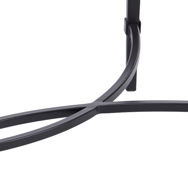 Stylish and super sturdy, the 45" black glass and metal oval coffee table is an amazingly good looking coffee table that will compliment your living room. This multi-functional coffee table is built to last from high quality metal. A sleek black monotone color gives this metal and glass table a fresh and updated look. This oval table is an updated take on a classic. This table features an updated monotone color scheme with black as the main color on both the top and the base. It has a lovely design that will definitely breathe some fresh air into your interior. This coffee table is the sturdy, reliable and stylish answer to your living room needs. 19" H x 45" W x 25" D
