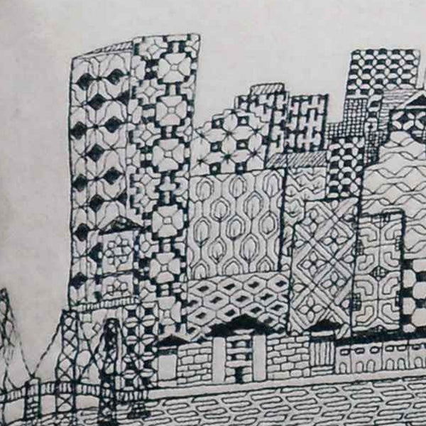Showcase one of the most famous cities in the world with our Cream Color San Francisco Daylight Skyline King Size Lumbar Decorative Pillow. The daylight view of San Fran from the Bay is one of the most famous landscapes in the world. The gorgeous art features many famous landmarks including the Golden Gate Bridge, rendering a modern whimsical way to bring this iconic cityscape to life. Made of a wool/nylon blend, this high quality stitched decorative pillow features black on white embroidered artwork mixed with pops of color that highlight important and recognizable icons from this fabulous city. This pillow makes a great gift, decorative accent and conversation piece. 4" x 45" x 14"