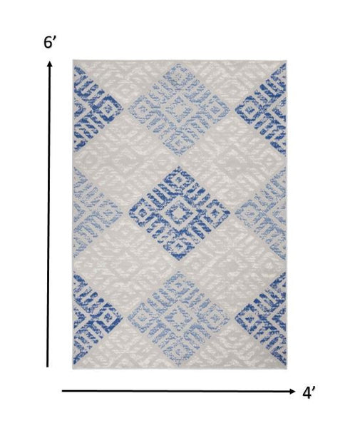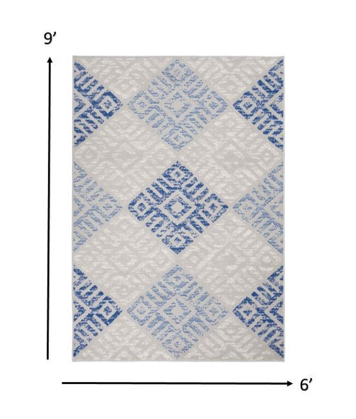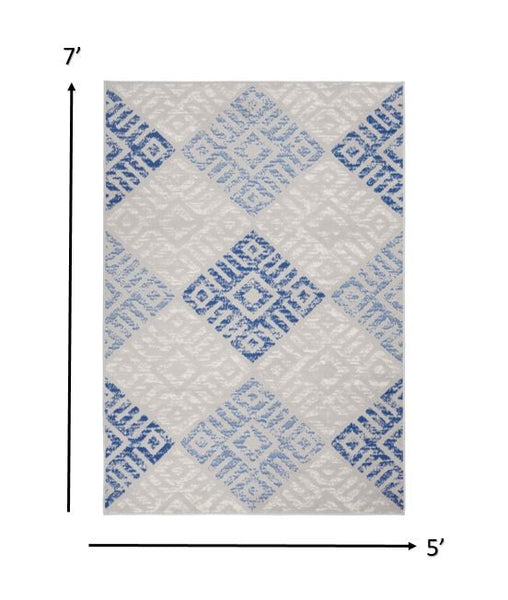Bring a tasteful essence of class to your living space with this unique Gray and Blue Diamonds Area Rug that will seamlessly go with any contemporary decor. The oversized tribal motifs bring a hint of cultural flare while holding your elegant aesthetic in place. Boasting a two-toned blue diamond patterns on a soft gray base, this rug will mend perfectly in any indoor space. Made with 100% polypropylene, the pristine colors will stay vibrant for years while cleaning and maintenance will be super easy. The soft and sumptuous surface texture provides a soft underfoot, making it a cozy addition for your living room, bedroom, or sitting area. Fulfill your contemporary styling needs to your desired extents while staying trendy with this unique area rug. 5’ x 7’