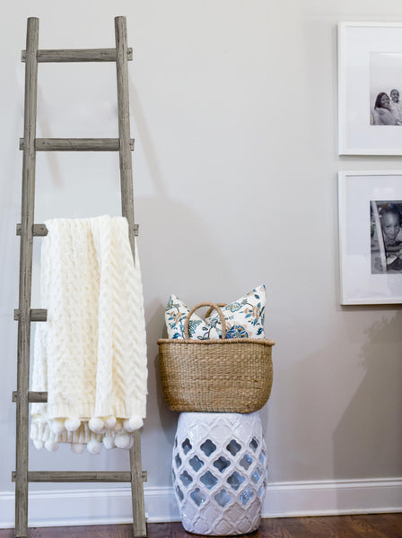Decorative Ladder Shelve piece. This piece makes a great accent piece to hang your towels or any accessories. Not intended for Ladder Shelve purposes. For decorations only.