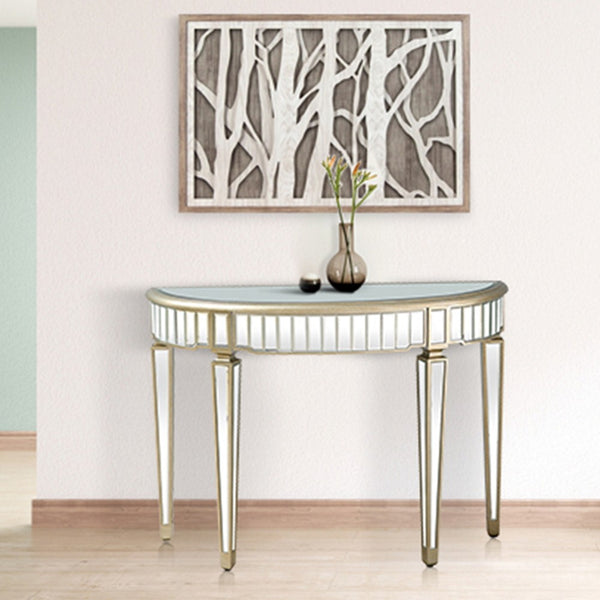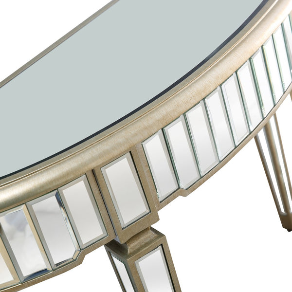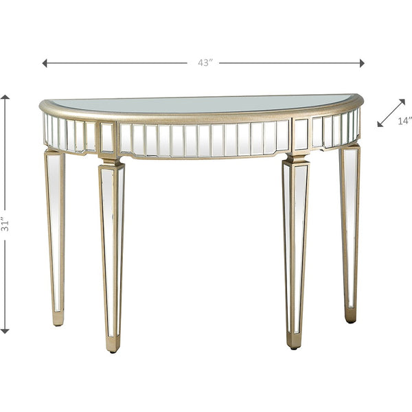 The Beauty and the Beast Console Table is refined elegance at its best. This understated design features a fully mirrored surface, matching mirrored apron and slender curved legs. With ample space beneath and curves galore, the posh appeal of the Beauty is impossible to ignore. It has a Beauty and the Beast vibe with its design, that looks sophisticated in any room. 32" x 48" x 16".
