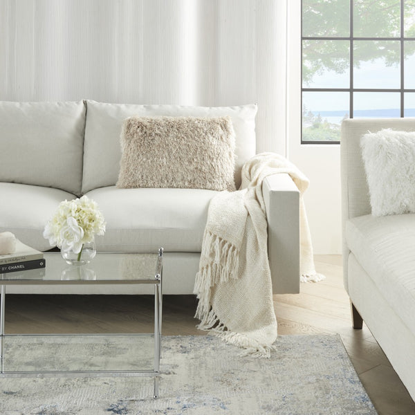 Encourage an indulgent style into your home with the addition of this luxurious and fun Beige Super Shaggy Modern Throw Pillow that will uplift the aesthetics of your living space while being functional. The subtle shade of beige/blush and the faux fur shaggy fashion adds to its elegance providing a scrumptiously soft and stylish surface texture that looks great and is comfortable too. Super soft and cozy, this throw pillow is made of 100% polyester. The full and fluffy look of this shaggy throw pillow will instantly transform any space. 14” x 20”x 6"