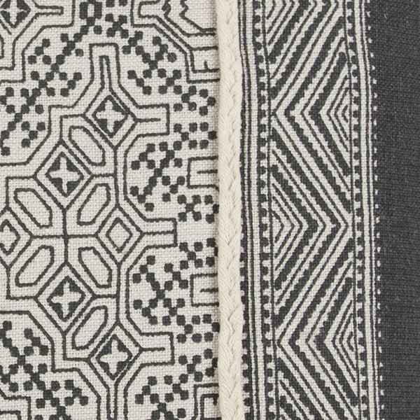 Showcasing classic color coordination with detailed patterns, this Black and Beige Tribal Pattern Throw Pillow will add a timeless visual appeal to your modern or traditional home. Designed in iconic tribal-influenced line work and floral geo pattern in black and ivory, it creates an artistic mood and the solid black striped ends highlight the center panel to draw the eyes. The braided cotton cording of the pillow enhances the outlook and adds dimension to the piece. The pillow features a solid coordinating back with a hidden zipper closure to make washing easier and the knife-edged aspect of this throw pillow provides a polished, crisp and clean look. Bring an intricate display of geometric patterns and a timeless palette with this decorative throw pillow that will enhance the aesthetics of any contemporary or conventional living space. 20” x 20” x 6.25”
