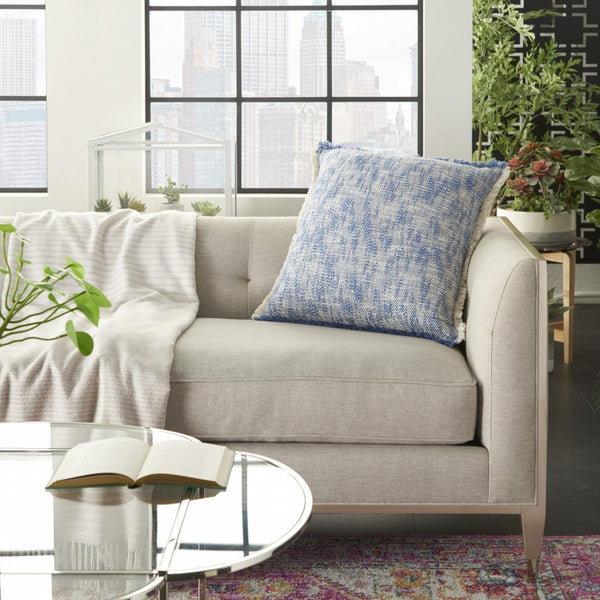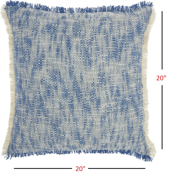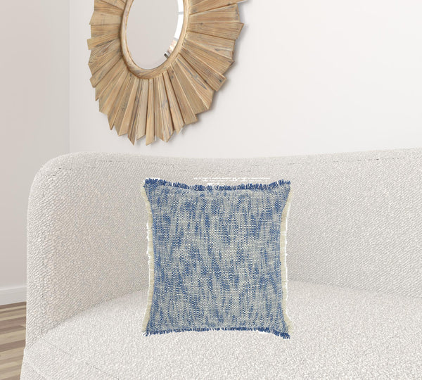 Show an elaborate artistic look for your bohemian aesthetic with this rustic Blue and Ivory Abstract Patterned Throw Pillow to help bring out the unconventional artist in you. The out of the box look helps resonate with its strong-willed abstract pattern using dark blue and ivory with accented flanges on the parallel sides. Constructed while taking your comfort into account, the throw pillow uses high-quality 100% cotton fabric which is not only easy to wash but is also very durable. Express your true artistic self with decor suited to it using this eye-catching piece. 20” x 20” x 5"