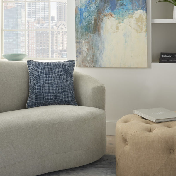Bring the prodigious style from the past into your modern aesthetic in the most profound way with the aid of this sophisticated yet casual, Blue Textured Squares Throw Pillow. The oceanic blue color does well in intensifying the vintage appeal. The textured squares create a unique hand feel while originating a subtle optical phenomenon that will attract the attention of all guests and family. The vintage feel is integrated with modern material innovations to utilize the 100% cotton fabric giving an everlasting look to your space. Both subtle and bold shades work wonders with this piece to bring an elegant and expressive ambiance to your look. The textured front gives way to a solid color back with large contrasting stitching the runs around the border. 18” x 18” x 5”