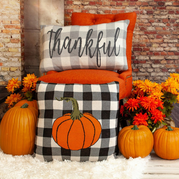Fashionable for Fall. This Buffalo Check Pumpkin Throw Pillow is great for Harvest, Fall, and Halloween. The checkered design is classic and timeless with the decorated pumpkin on the front. This square pillow is a 100% cotton, comfortable, and festive. 20” x 20” x 4”