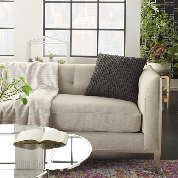 Invoke a sense of comfort, style, and elegance in your modern minimalistic decor with this trendy and soft solid Charcoal Chunky Braid Square Throw Pillow. The braided front is essential in delivering a new layer to the whole experience. Whereas with the aid of the 100% cotton fabric, longevity and ease in cleaning are ensured. The bold charcoal color is meant to stand out among more neutral and soft colors giving the whole space a sleek and inviting look. Pursue new progressive and creative spaces with staying true to high quality with this elegant piece. 18” x 18” x 5”