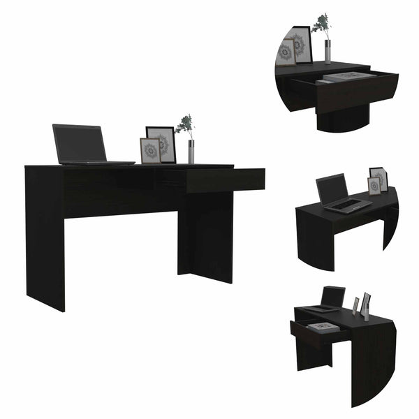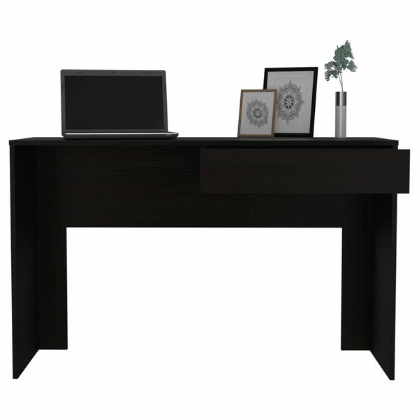 Stay organized and efficient with the amazing Clio Black Computer Desk with Drawer. Stylish and super practical, this is a beautiful minimalistic desk for any home or office. Perfectly suitable for small home offices, bedrooms, or teenager's rooms. It features a large desktop surface and a spacious drawer with all-metal hardware. The entire desk is made from a high-quality particle board with a beautiful wenge black finish. 30" H x 47" W x 18" D