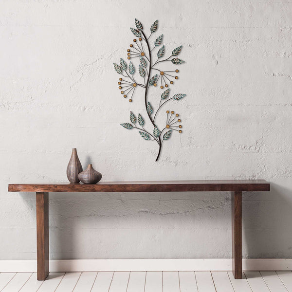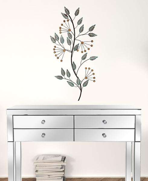 Flowers instantly add color, energy, and vitality to any living space. Their colorful petals and gentle nature radiate positive vibes the freshen up your home or office. If you are looking for an artful piece of decor that will create a fresh and natural vibe for your interiors, this metal flower art piece can help. Brighten up your room with this Wall Decor. This hand-painted metal flower wall decor features a graceful and colorful flowering plant. It flaunts stunning beaded petals that give the piece a luxurious touch. The whole piece measures 17.75 x 1.00 x 31.25-inch, and is made of 90% metal and 10% wood.