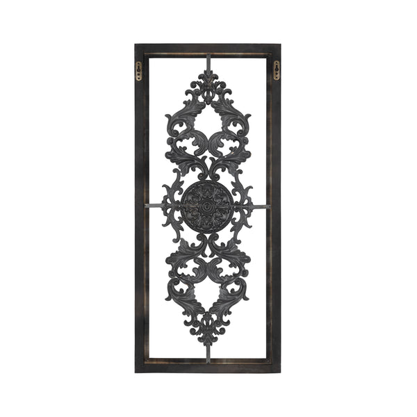 Create a stunning new focal point in your home with this scroll ornament which features graceful filigree details, bordered by an elegant wooden frame and a distressed finish. Its teal shade sets a serene and calming tone in your indoor space.