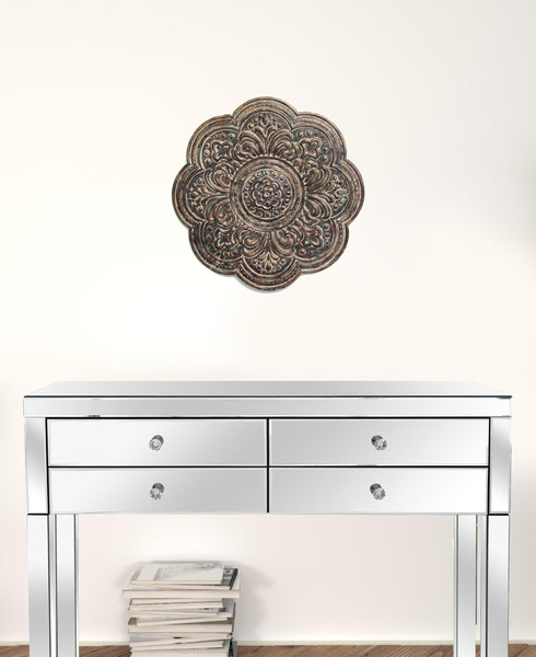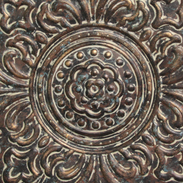 Cool vibes are given by this elegant yet rustic bronze finish medallion wall decor. This special medallion is artfully handmade and handpainted metal to spice up the look of your living space. Due to the handcrafted nature by skilled artisans, each piece will be slightly unique, adding to its beauty and value. It features bronze finish metal plating with a hint of distressing to make it a perfect visual accent on any wall background. The nature of this style is transitional, allowing it to blend into almost any decor ranging from rustic farmhouse to contemporary or modern. Easy hanging with keyhole on back. Wipe clean with damp cloth. 18" X 0.5" X 18".
