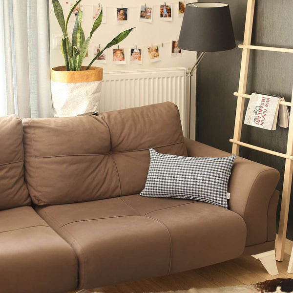 Upholding a rich and luxurious vibe, this Gray Houndstooth Lumbar Throw Pillow will be a sophisticated addition to any modern or contemporary setting. Featuring the classy houndstooth checkered pattern in black and gray over an ivory base, this pillow accentuates an elegant combination. Made with care by Turkish artisans, this pillow features OEKO-TEX Standard 100 certified polyester fabric to ensure quality and product safety that will last for ages with low maintenance. The hidden zipper closure adds to a smooth finish for a soft and sumptuous feel on the touch while the soft poly filling offers maximum comfort. Besides serving as a sophisticated accent to complement any furniture, this decorative throw pillow will add a sense of class and comfort to your home. 12” x 20” x 1”