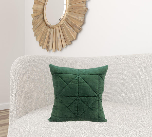 Restore the warmth in your home with the Green Chunky Geo Stitched Velvet Decorative Throw Pillow. Uniquely crafted with aesthetically designed geometric tufted stitches on luxurious velvet, this lightweight and soft throw pillow is an ideal choice for exquisite comfort. The silky plush of the bold hued pillow conveniently conceals a zipper under a hidden flap provided for easy removal and reinserting. Add some contrast to your home with this bewitchingly designed throw pillow and enhance the decor of any space in your home. 20" x 20" x 4"