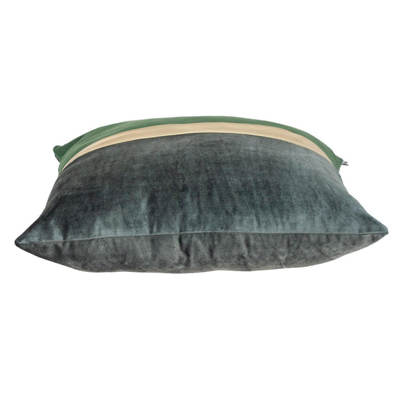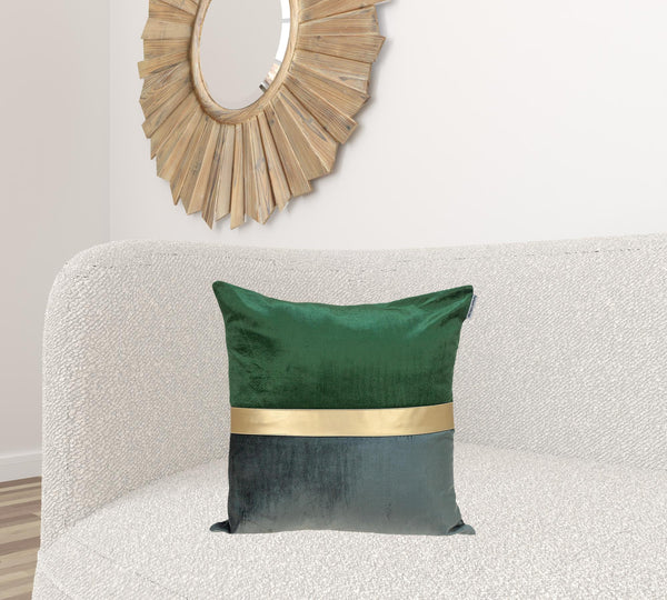 Make a statement with the vibrant Green and Dark Gray Tufted Velvet Square Pillow. Featuring 100% velvet texture, the smooth and soft structure of this pillow brings a little character into your humble space. The luxurious gold band in between the bold hues also adds character to this all velvet multicolored pillow. The monochromatic back of the pillow conveniently conceals a hidden zipper making it easy to remove and reinsert the cushion for cleaning purposes. Brighten your dull space with this dynamic and versatile compact pillow that's add a hint of radiance and brilliance to your home. 20" x 20" x 4"