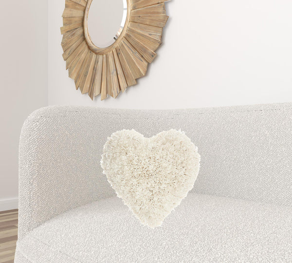 Add a pop of interest to your home with this cute Heart Shaped Cream Shag Accent Pillow. The shag fabrication gives the pillow a great texture, providing a uniqueness and extra style to your bed or sofa setup. The beautifully soft cream color is perfect for any interior in need of a subtle pop of color and chicness. The zipper closure feature allows for easy cleaning and interchangeabilty, making this pillow a practical and trendy must-have! 4" x 18" x 18"