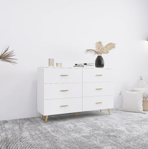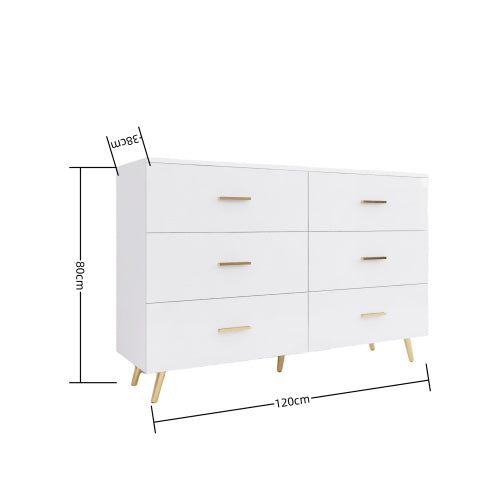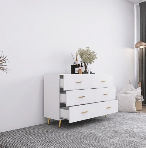 Product Name:High Glossy Surface 6 Drawers Chest of Drawer with Golden Handle and Golden Steel Legs White Color Vanity