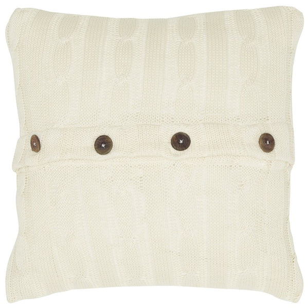 The delightful tone and texture of this Ivory Knit Striped Pattern Throw Pillow make it an exemplary representation of trend and tradition combined in utmost simplicity. The subtle ivory base features a wonderful knit pattern in a vertical striped fashion, emphasizing a sophisticated look to work well with modern or casual decors. The amazing textural pattern is featured in both front and back for a unified look while the wooden button detailing adds a rustic charm to the piece. Crafted from the softest cotton fabric, this down-filled pillow is super fluffy and cuddly to make you comfortable on the couch or bed. Thanks to the knife edging for the crisp and polished look that gives the pillow a stylish modern appeal. The pillow looks absolutely fashionable on both sides, allowing you to flaunt the pillow according to your taste of style. 18” x 18” x 6.25”