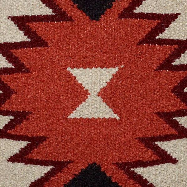 Pulsating with vibrant hues, this Ivory Orange Traditional Kilim Throw Pillow is a unique piece of décor to fit a multitude of interior styles and decors. Skilled hands crafted this pillow using a woolen rug flat weaving technique transitioning from ivory to orange and other accenting colors for visual intrigue. The kilim patterns and saturated tones accentuate a sense of cultural diversity to add to the beauty of any traditional or bohemian setting. Made with a durable cotton wool blend, the pillow gives warmth and utmost softness while the same fabric on the back conceals a zippered closure which makes the pillow easy to clean. The down-filled pillow ensures a plush and comfortable texture while the knife edge gives it a clean look with added dimension. The effortless beauty of this throw pillow will inspire a relaxed and comforting vibe in your transitional home with a tribal essence. 18” x 18” x 6.25”