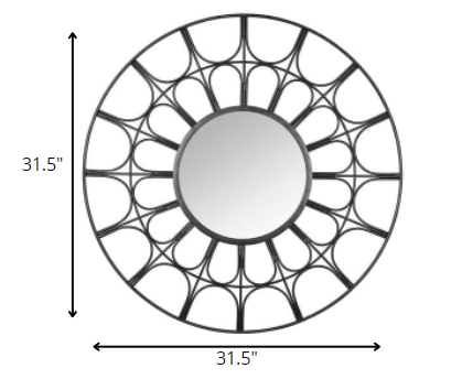 This Metal Arch Design Round Wall Mirror will make the perfect addition to your home. The frame of the mirror is made from durable yet light-weight metal and features a design that is inspired by archways. The color of the frame is dark gray and the arch design is set in two different layers. The outer layer has more spaced out arches while the inner layer as more densely packed arches. The mirror in the middle is surrounded by a thick gray border which elevates the whole piece. This wall mirror will look great anywhere in your home with its neutral colorway. You can use this for its practicality or for its design in your home or it can make a great gift for your friends and family. 31.5" H x 31.5" W x 0.8" D