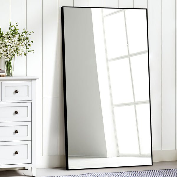 This Minimal Black Bathroom/Vanity Mirror will help you elevate and brighten up any space in your home. The mirror has a narrow rectangular shape with a thin black frame. The frame is made from aluminum alloy which makes the mirror durable and light enough to hang securely wherever you want. Hang this mirror up in your closet to do last minute outfit checks, or in the bathroom as a vanity mirror - it truly is a versatile piece. 51.2" H x 31.5" W x 0.9" D