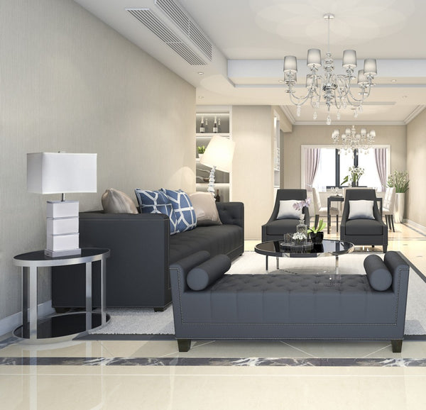With this Modern White and Silver Table Lamp you can design and brightness to any space in your home. The base of the lamp is made from a silver metal piece that holds the main body inside it. The main body is made from three different blocks of white colored acrylic which are attached together through silver metal borders. The white rectangular shade compliments the overall look and keeps the lamp looking very unique and uniform. Use this lamp on its own as a statement piece or you can get a pair for your bedroom or living room. 26.75" H x 17" W x 9" D