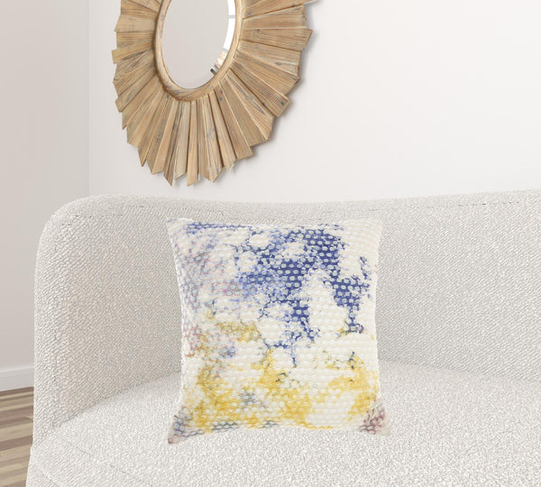 Add a pop of color and interest to your home with this Multi Color Cotton Acryllic Accent Throw Pillow. The experly handcrafted colorful pillow provides a uniqueness and extra style to your bed or sofa setup. The fun pops of yellow, blue and pinks makes this pillow perfect for any interior in need of a subtle pop of color and chicness! 5" x 22" x 22"