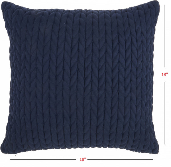 Invoke a sense of comfort, style, and elegance in your modern minimalistic decor with this trendy and soft solid Navy Blue Chunky Braid Square Throw Pillow. The braided front is essential in delivering a new layer to the whole experience. Whereas with the aid of the 100% cotton fabric, longevity and ease in cleaning are ensured. The bold navy blue color is meant to stand out among more neutral and soft colors giving the whole space a sleek and inviting look. Pursue new progressive and creative spaces with staying true to high quality with this elegant piece. 18” x 18” x 5”