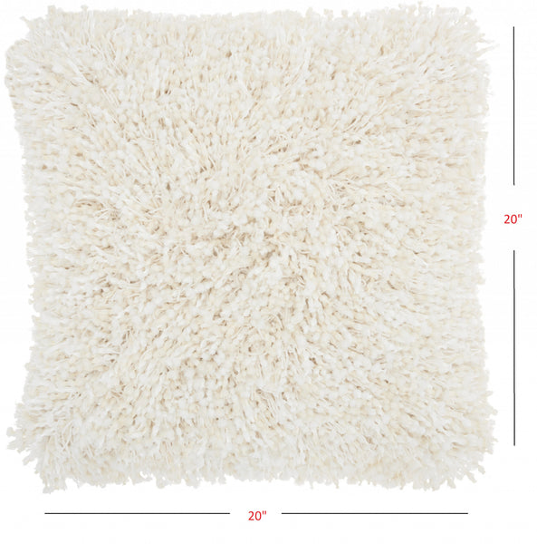 Soft, trendy and stylish, this Plush Cream Throw Pillow makes for the perfect interior accessory! The gorgeous soft inner of polyester mixed with the shag outside casing makes for a soft pillow that holds it shape, standing the test of time. The beautifully calming color of cream is the perfect hue for easy styling, matching anything you throw it together with! 6" x 20" x20"