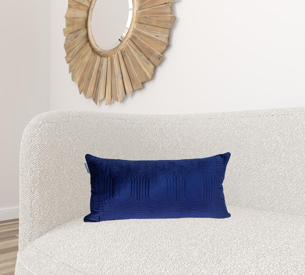 Spruce up your home with the Quilted Velvet Blue Lumbar Throw Pillow, premium in design the pillow is an excellent mode to portray a soft ambience into your busy space. Featuring a combination of cotton and velvet, the lumbar throw pillow comprises of seamless geometric patterns that enhances it's unique texture making it super comfy and cozy. A concealed zipper on the back makes it easy for cleaning and reinserting. Attractive and sophisticated this throw pillow is perfect for your bed, sofa or accent chair, ideally a piece that completes your home. 12" x 24" x 4"