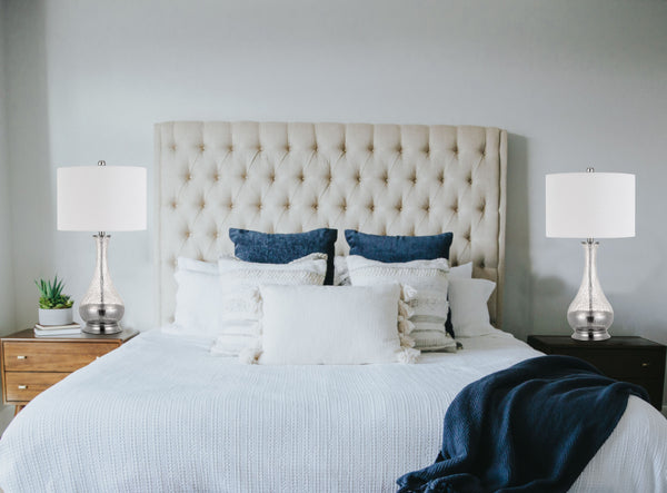 Try something new in your home decor by getting this Set of Two 27” Glass And Steel Table Lamps. Made from high quality glass, steel, and linen, this is a strong and very sturdy piece that will perfectly complement your existing decor and style. The lamp base is a slender vase structure made from glass and it has a crackle design that adds to the beauty and allure of the whole piece. The light shade is made from white hardback linen and it perfectly fits the glass design. This is the perfect lamp fixture for your dining room, living room, or home study. 27” x 14” x 14”