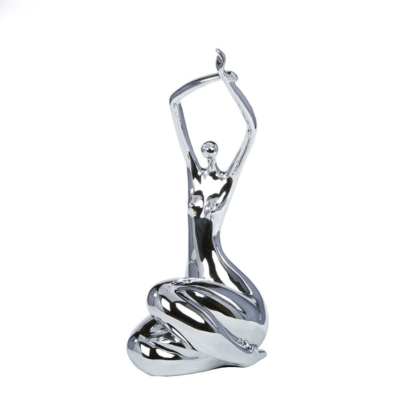 Looking for a way to spice up any room, add this Silver Women Large Stretching Sculpture. This unique sculpture can be a great accent or serve as a truly spectacular piece of three-dimensional art. Add this silver sculpture to your living room, bedroom, office, or lounge. 21" x 7" x 11".