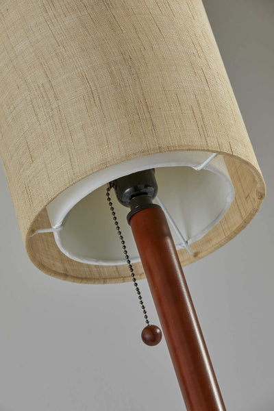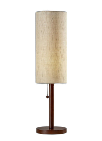 Perfect for a natural, modern setting, this table lamp is made up of beautiful Walnut Eucalyptus wood. A simple silhouette lets the textured natural tall, double cylindrical shade shine. A wood ball on the on/off pull-chain completes the statement. The lamp fashionably services bedside or desk and introduces a rustic note for the den. This lamp has a black cord and is smart outlet compatible. Bulb is not included.
