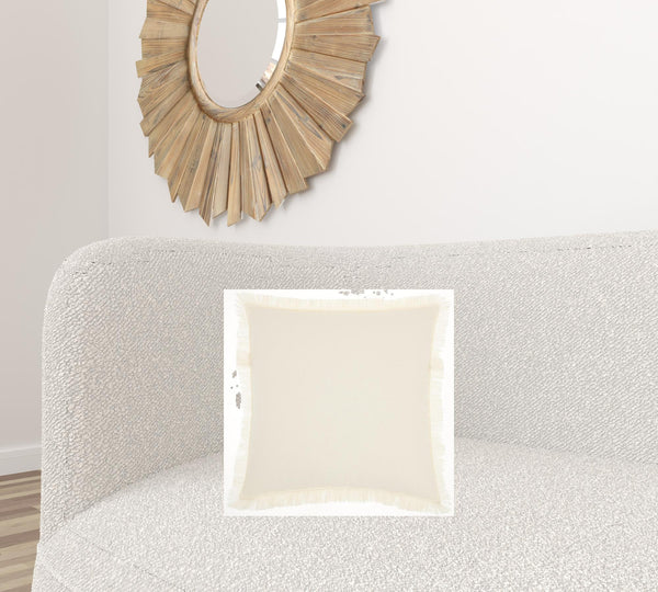 Be it a minimalistic aesthetic or a creative contemporary look, this Solid Ivory Contemporary Throw Pillow will fit in perfectly and accentuate your overall look seamlessly. The solid ivory color meshes perfectly with any dark or light shades for a comforting yet bold look. The exuberant look continues throughout with soft-touch fringes on all sides giving an elegant flair to the contemporary style. Made with 100% cotton, the throw pillow can withstand wear and tear for years. This piece will act as the strong bridge between your innovative style and the perfect layer of comfort that every household needs. Solid pillows are also great for mix and match and blend with virtually any style. 18” x 18” x 5”