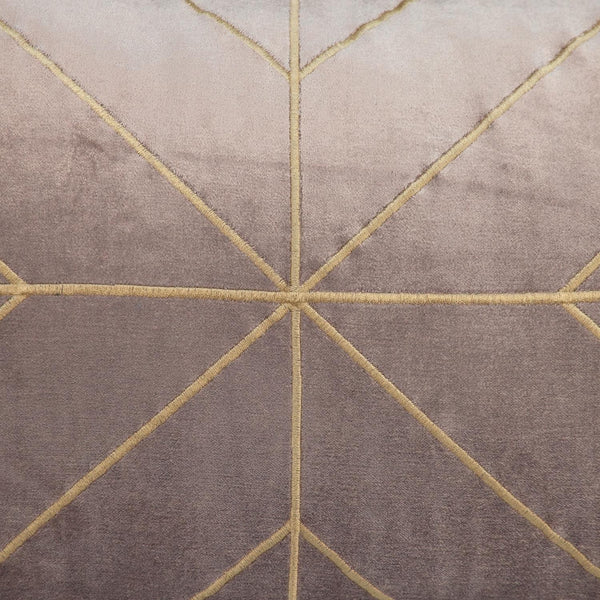 Luxury meets simplicity with the Taupe and Gold Geo Velvet Lumbar Pillow with Gold Tassels. Beautifully handcrafted from an all velvet base, the pillow gracefully evokes a sense of charm and brings forth a little drama into your diverse space. Fascinating gold geometric patterns stitched on the soft velvet leaves a mesmerizing effect while adding character to your room. Four gold tassels adorn the four corners of the pillow that enhance the plush level. Concealed on the back is a hidden zipper under a neatly designed flap, provided for easy cleaning and removal. Enliven your home by pairing this pillow with your favorite pastel shaded decors. 12" x 24" x 4"
