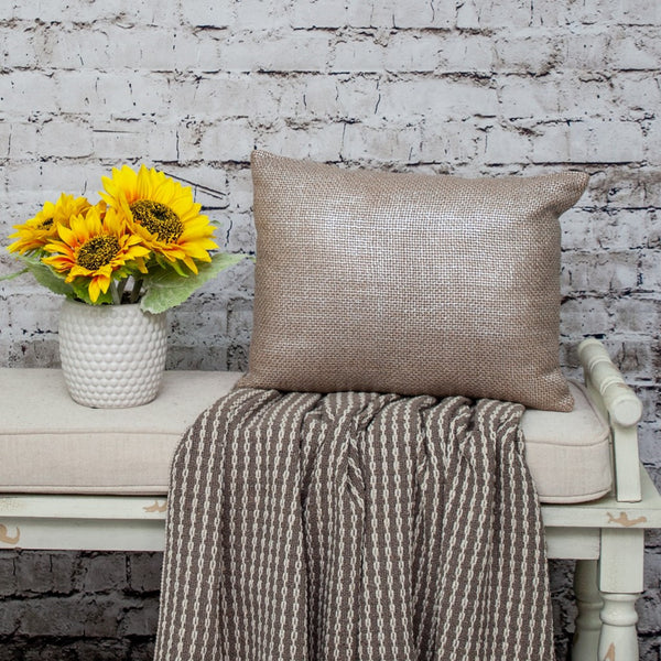 The Touch of Silver Natural Throw Pillow is the perfect balance between traditional and modern styles, and will make a great addition to any piece of furniture around your home. While the natural woven fabric gives it a rustic feel, the slight addition of silver weave on top of it delivers a modern touch. With a zipper closure on the edge, this decorative throw pillow will be a great way to spruce up your chair, sofa, nook, or bed. 14” x 18” x 4”
