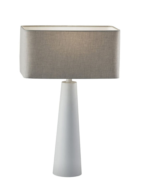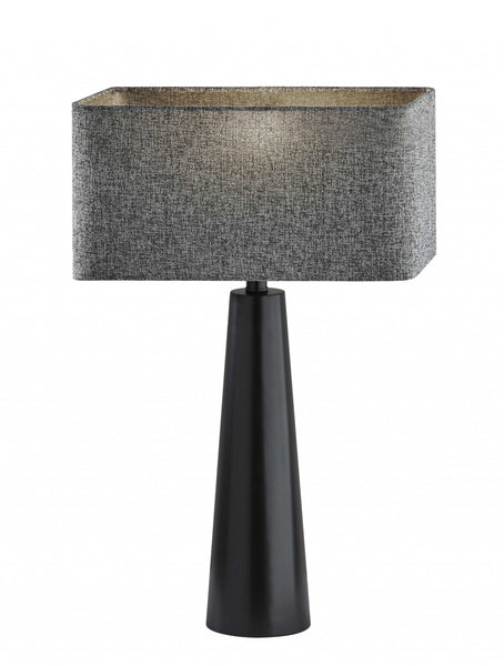 Add a warm, ambient source of cozy light to the bedside, sofa or reading area with this urban edge table lamp. This sleek table lamp style elevates any room with a touch of luxury and modernism. A black metal angular tapered base is paired with a dark grey rectangle-shaped textured fabric shade with rounded corners, creating an urban edge look. Turn the lamp on and off with a convenient switch on the socket. Table lamp is either UL or ETL listed, meaning that it has been tested and approved to meet the government-regulated safety standards for the USA. Bulb is not included.