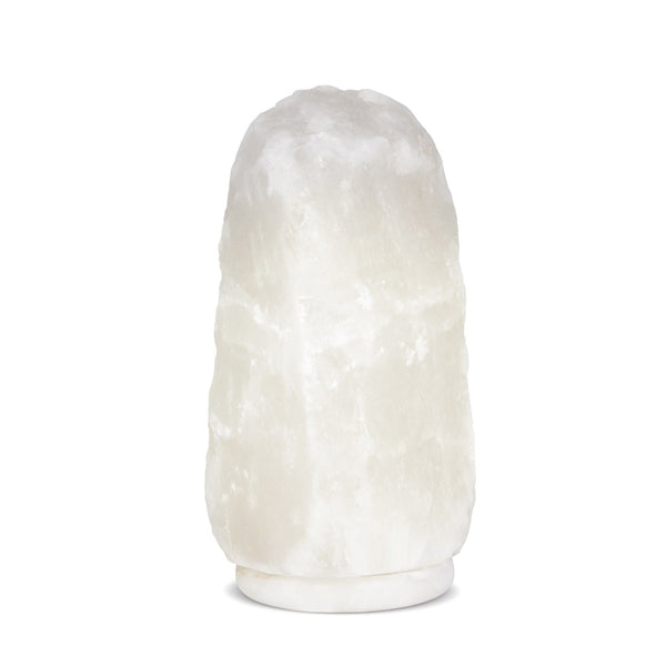 Bring zen and tranquility to your space with this all natural White Hand Carved Himalayan Salt and Marble Lamp. Light your space with the exotic and rare beauty of white Himalayan Salt resting atop a white marble base. When lit this beauty emits a warm white glow. Himalayan Salt Lamps are said to emit a stream of negative ions that help purify the air against allergens and pollutants while also providing higher levels of relaxation and overall wellness. This white light will give an overall soothing glow that is calming and peaceful. 10" x 5" x 5"