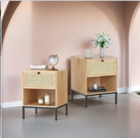 [LARGE STORAGE]: The night stands for bedrooms set of 2 with 2 rattan decorated drawers not only charm your home, it also offer large enough space to store your accessories, toiletries, blankets, underwear, cosmetics, baby clothes, paperwork, toys etc, great to have by your bed/couch/soft, let your phone, charger, eyeglasses and other items within reach, keep your bedroom living room organized and tidy.